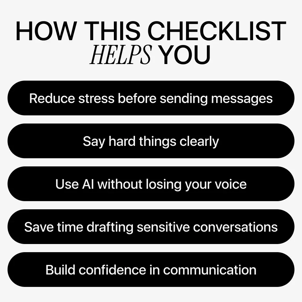 This checklist is perfect for professionals, freelancers, business owners, creators, and anyone who wants reliable AI help for difficult messages without sounding robotic or cold.
