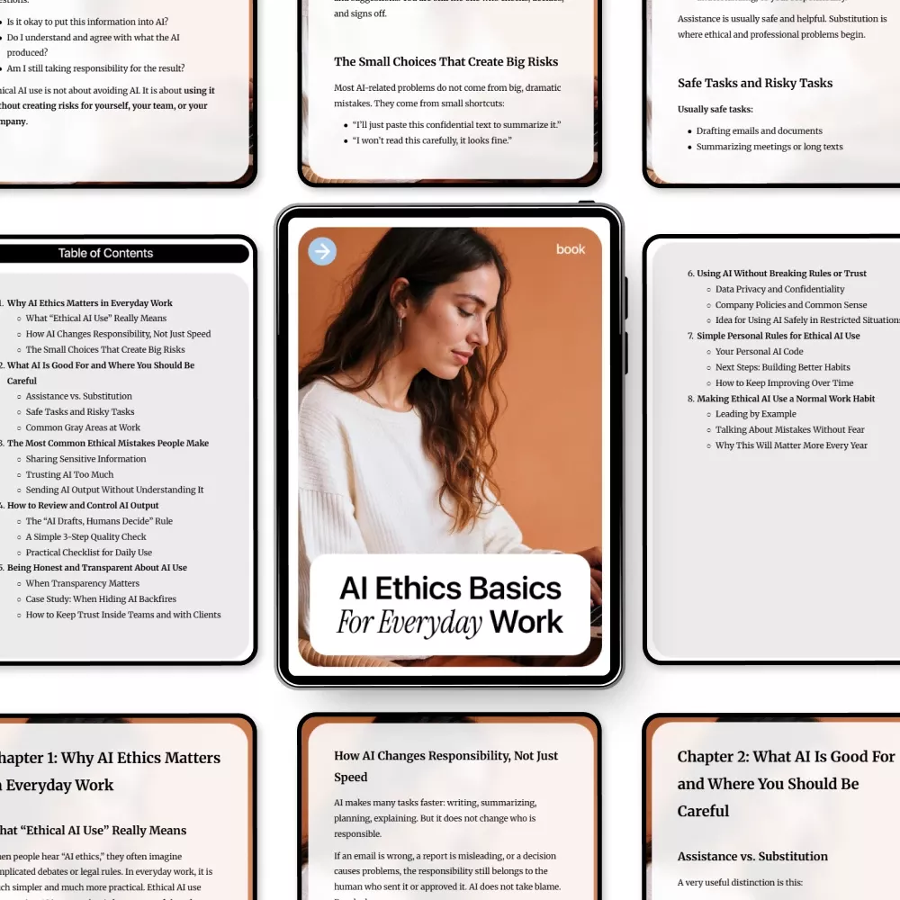 Unlike generic AI guides, AI Ethics Basics for Everyday Work focuses on practical, everyday applications. It translates abstract ethical principles into real workplace scenarios, checklists, and actionable rules. With clear examples, case studies, and step-by-step guidance, this resource makes ethical AI use approachable and easy to integrate, even for non-technical professionals.