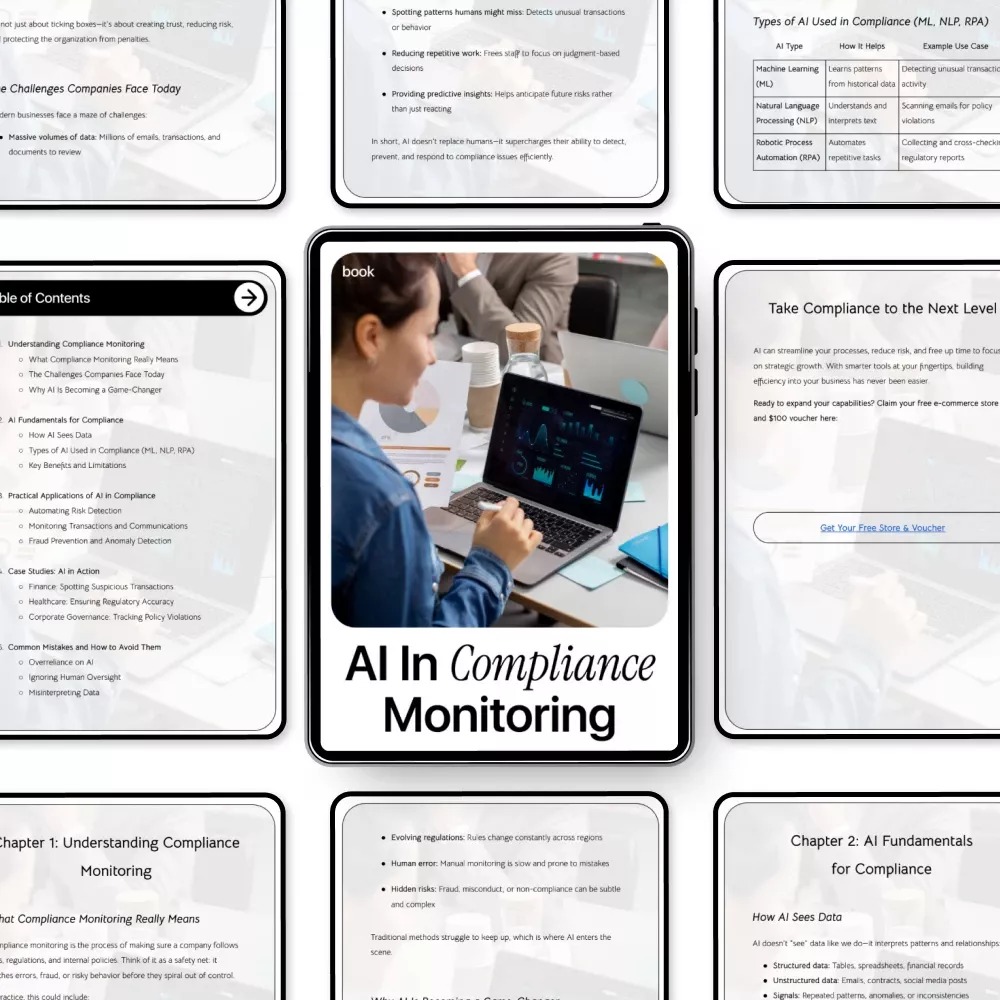 This ebook is ideal for compliance officers, risk managers, auditors, legal professionals, fintech teams, healthcare administrators, and business leaders who want a clear, non-technical guide to ai in compliance monitoring. It’s also perfect for consultants and students looking to build practical knowledge quickly.