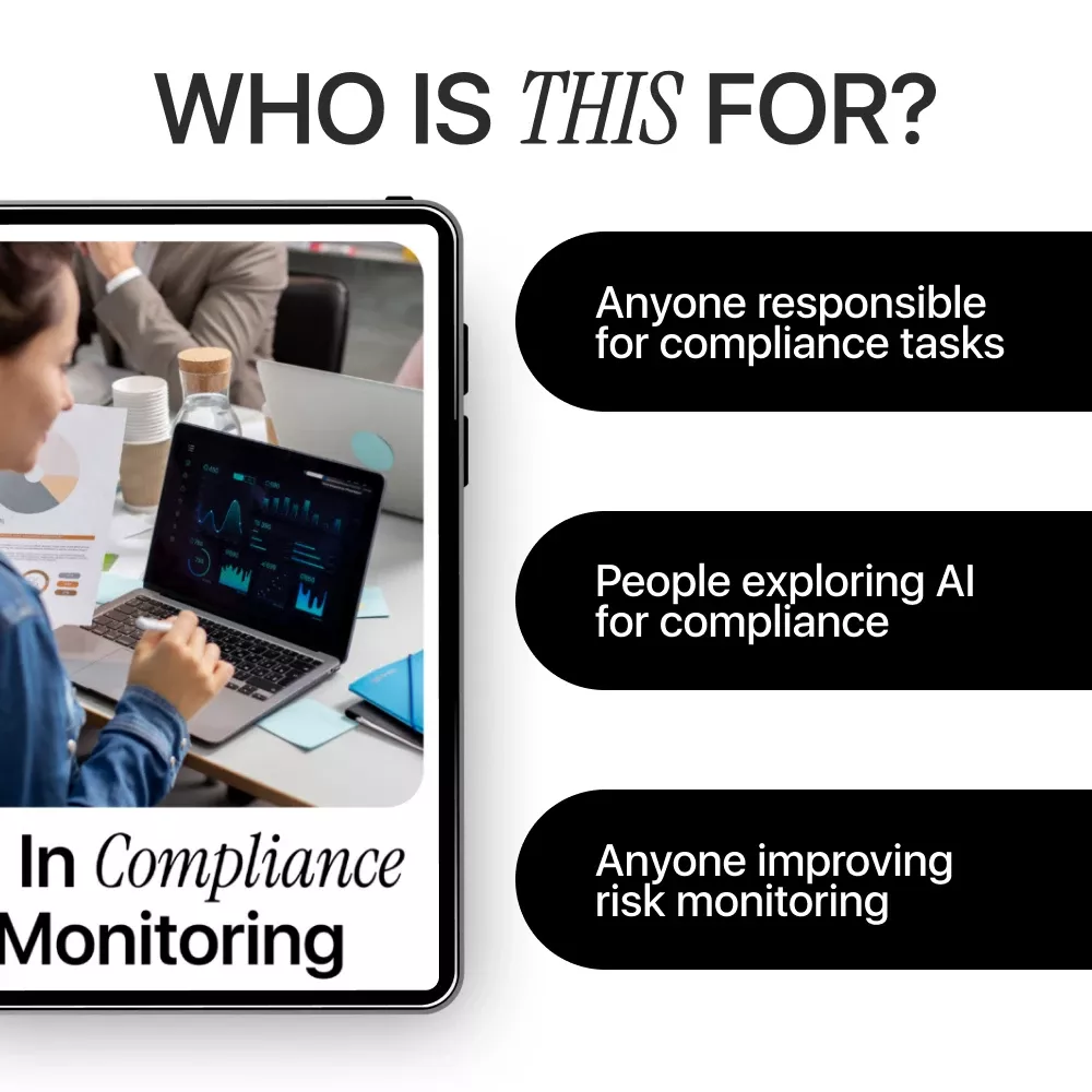 Unlike generic AI overviews, this ebook focuses specifically on compliance monitoring, blending strategy, real-world examples, and hands-on guidance. It emphasizes human oversight, ethical considerations, and realistic implementation, so you can apply what you learn with confidence.