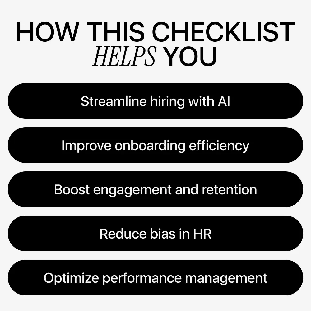 Unlike generic AI guides, this checklist is focused, actionable, and designed specifically for HR workflows. Each step is practical, easy to implement, and aligned with real ai use cases for human resources, making it perfect for immediate use.