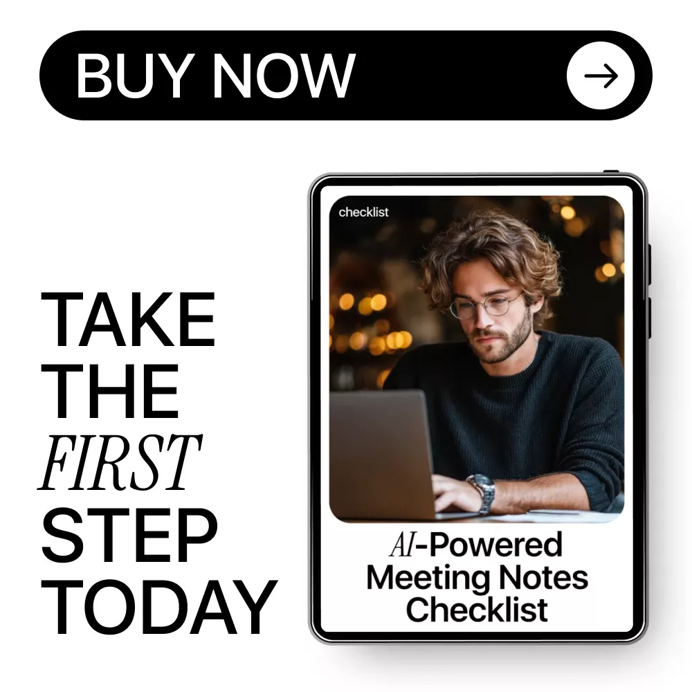 Stop letting important details slip through the cracks. Download the AI-Powered Meeting Notes Checklist now and start running smarter meetings with less effort and better outcomes. Click buy, download instantly, and put AI to work for you today.