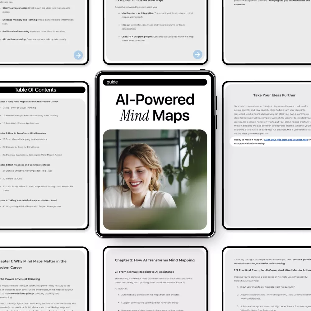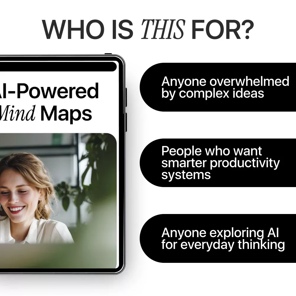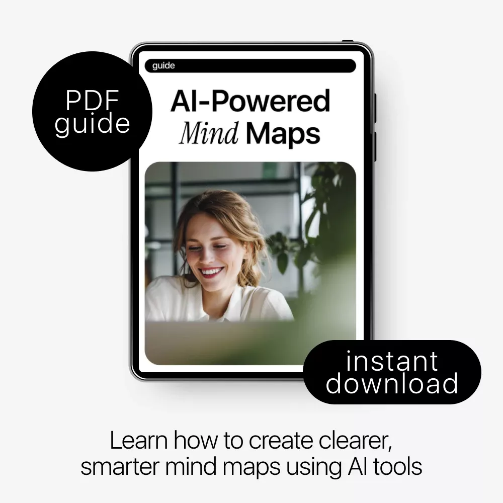 If your ideas feel scattered or overwhelming, this guide shows you how to bring instant clarity using AI-Powered Mind Maps. Designed for modern thinkers, this practical digital guide teaches you how to use ai for creating mind maps that save time, spark creativity, and turn complex thoughts into structured visual frameworks. Whether you are planning projects, studying, brainstorming, or advancing your career, this resource gives you a repeatable system you can use again and again.