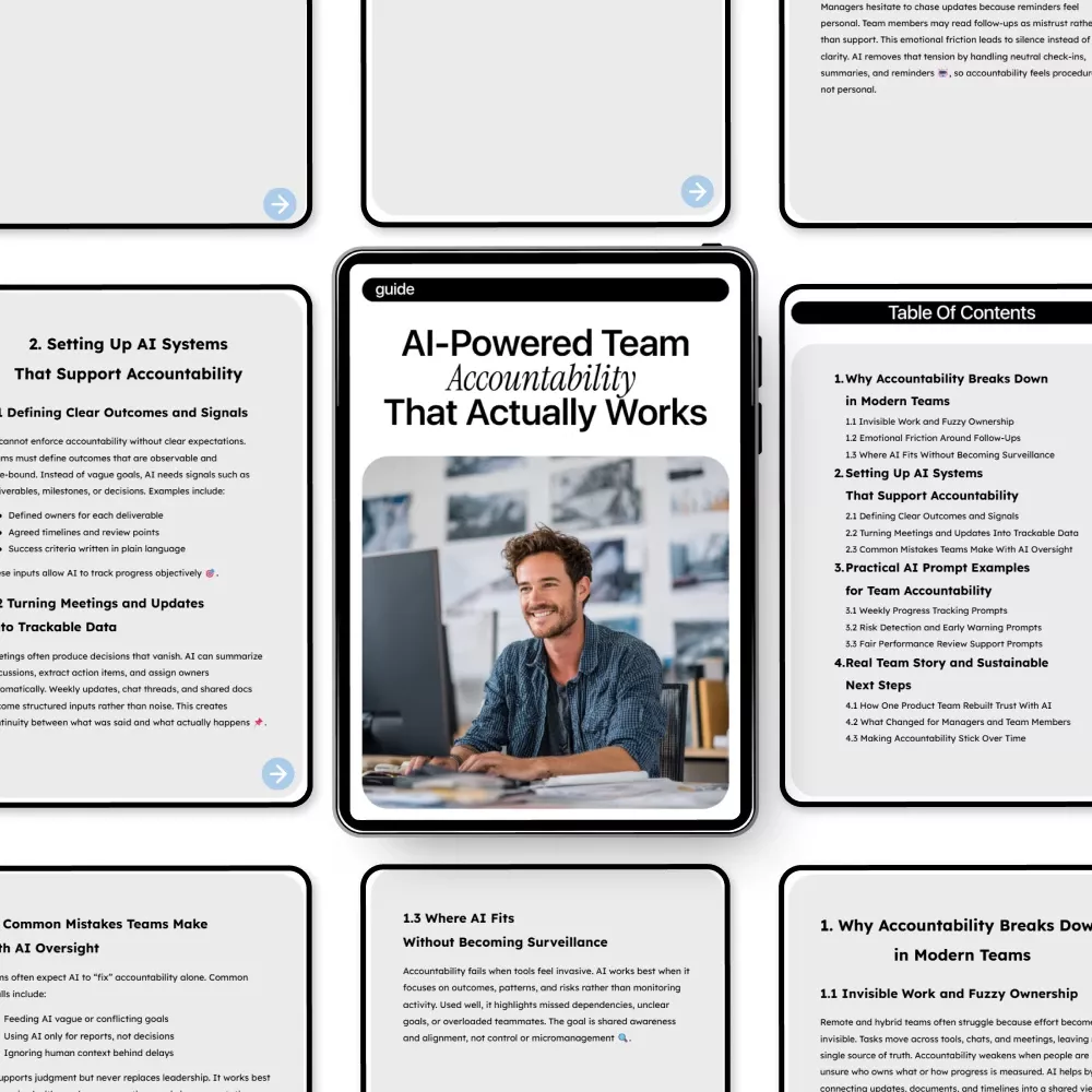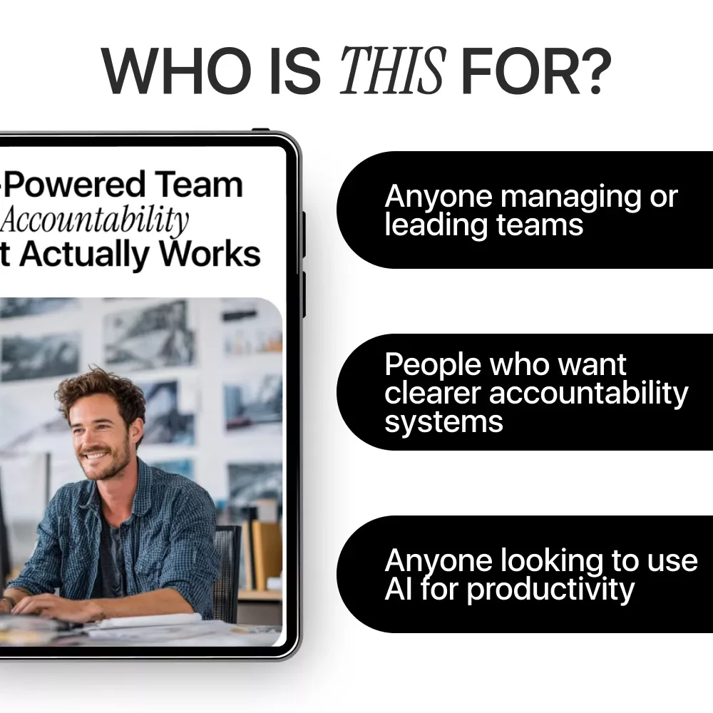 Stop letting accountability slip through the cracks. Download AI-Powered Team Accountability That Actually Works today and start transforming your team’s productivity, trust, and clarity. Your team deserves an approach to accountability that is smart, fair, and sustainable.