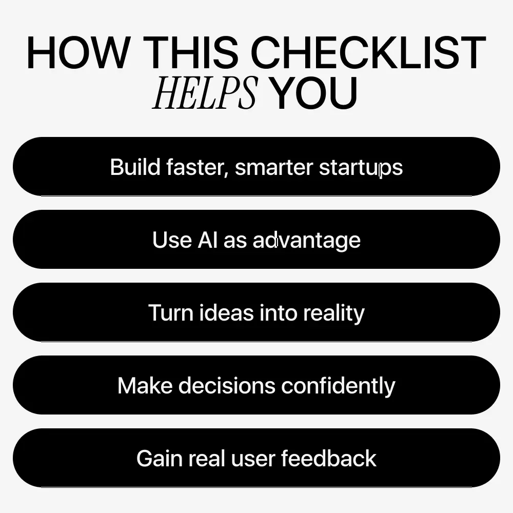 This checklist is perfect for corporate professionals ready to embrace the startup world, ambitious entrepreneurs looking to launch faster, or anyone curious about how to use AI to switch from corporate to startup and achieve more with less friction.