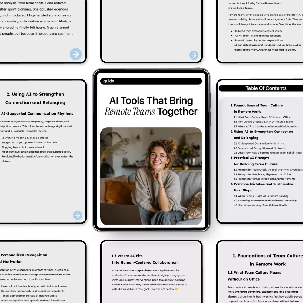 Unlike other digital resources, AI Tools That Bring Remote Teams Together combines human-centered strategies with actionable AI prompts, real-world case stories, and practical checklists. It doesn’t just explain theory—it gives you tools you can implement immediately to strengthen your remote team culture.