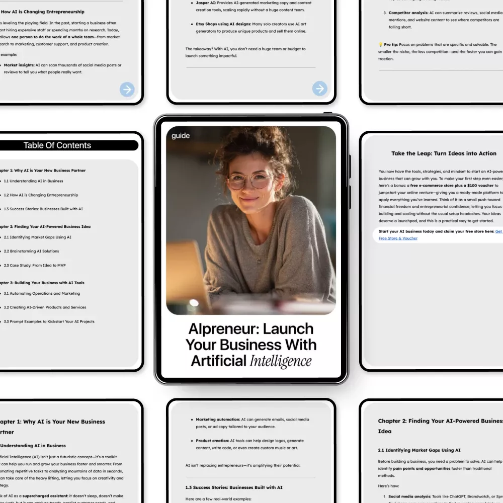 Step into the future of business with AIpreneur: Launch Your Business with Artificial Intelligence, a comprehensive guide that shows you exactly how to use AI to start your own business. Whether you’re a first-time entrepreneur or a seasoned founder, this digital download empowers you to harness the power of AI for idea generation, automation, and business growth. Packed with actionable strategies, real-world case studies, and practical prompts, it’s your roadmap to building a smart, efficient, and scalable business in today’s AI-driven world.