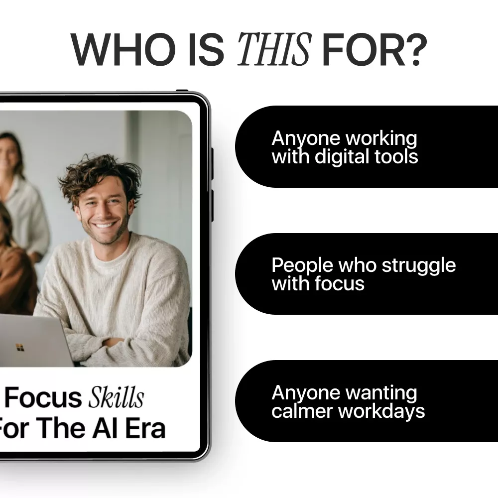 This guide is ideal for knowledge workers, creators, entrepreneurs, students, and professionals who rely on digital tools and want to develop sustainable focus skills in ai environments. Whether you work with AI daily or simply feel distracted by modern tech, this resource meets you where you are.