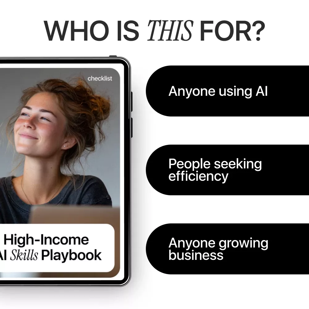 This digital checklist is designed for business owners, freelancers, creators, marketers, side-hustlers, and anyone who wants to build ai skills that pay more. Whether you’re new to AI or already experimenting with tools, this playbook helps you level up with clarity and confidence.