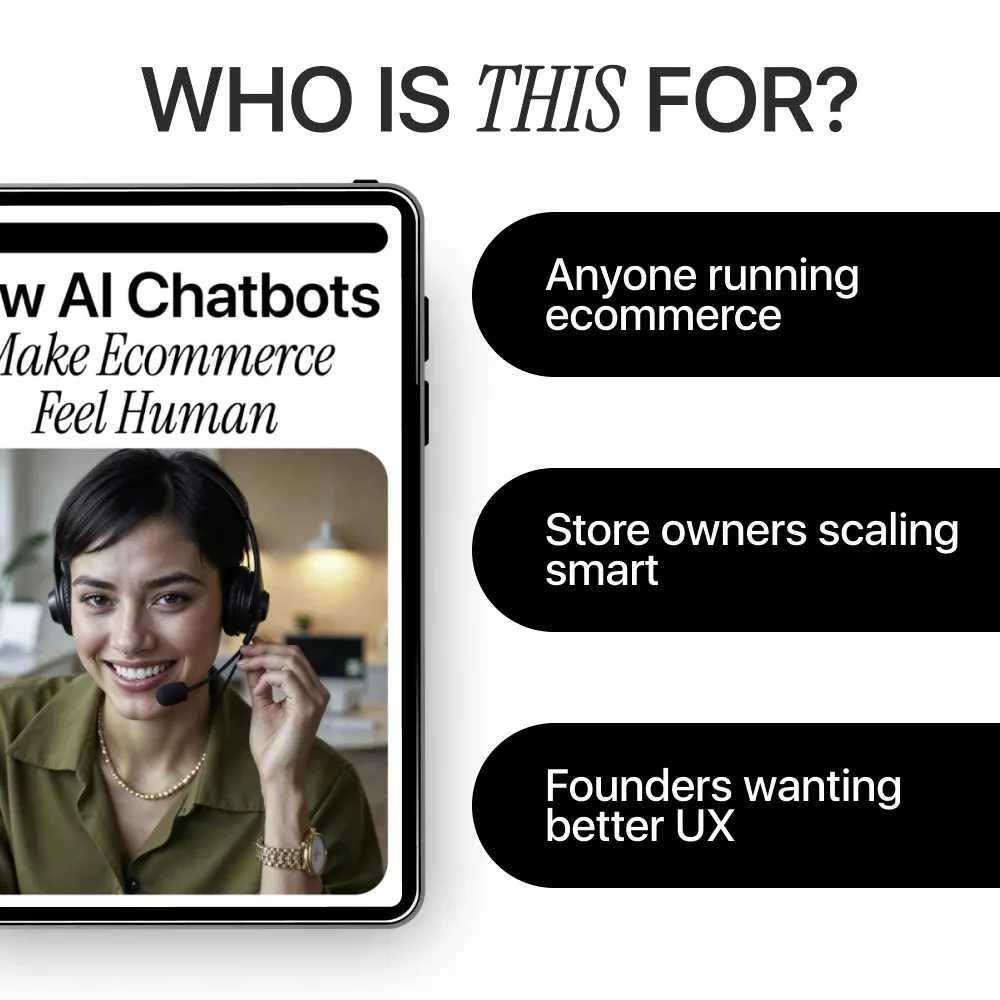 Great customer support doesn’t start with faster replies. It starts with feeling understood. How AI Chatbots Make Ecommerce Feel Human is a practical, no-fluff guide that shows you how to use AI chatbots to support customers in a way that feels natural, helpful, and genuinely human. Instead of overwhelming you with theory, this guide focuses on real-world ecommerce situations and simple frameworks you can apply immediately.