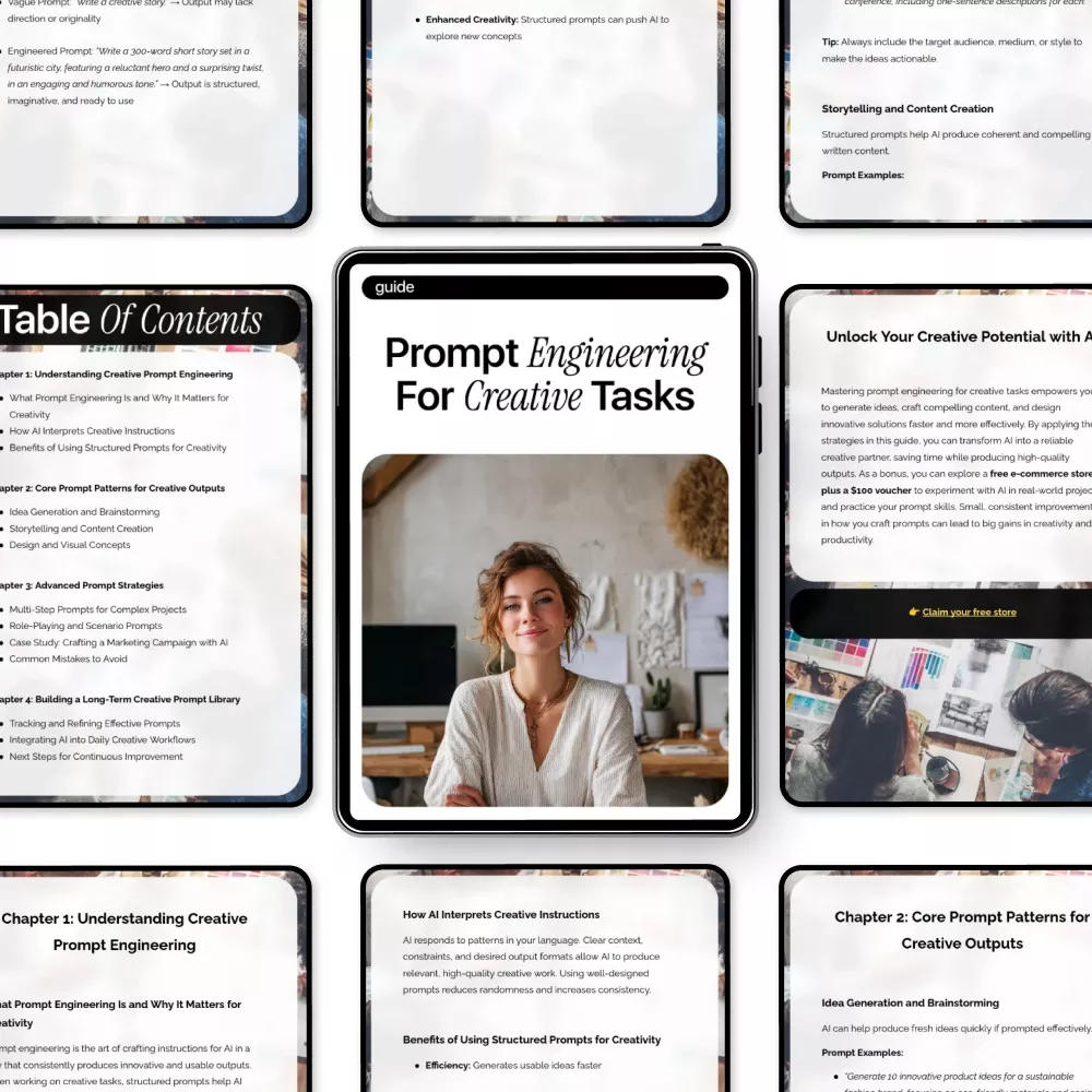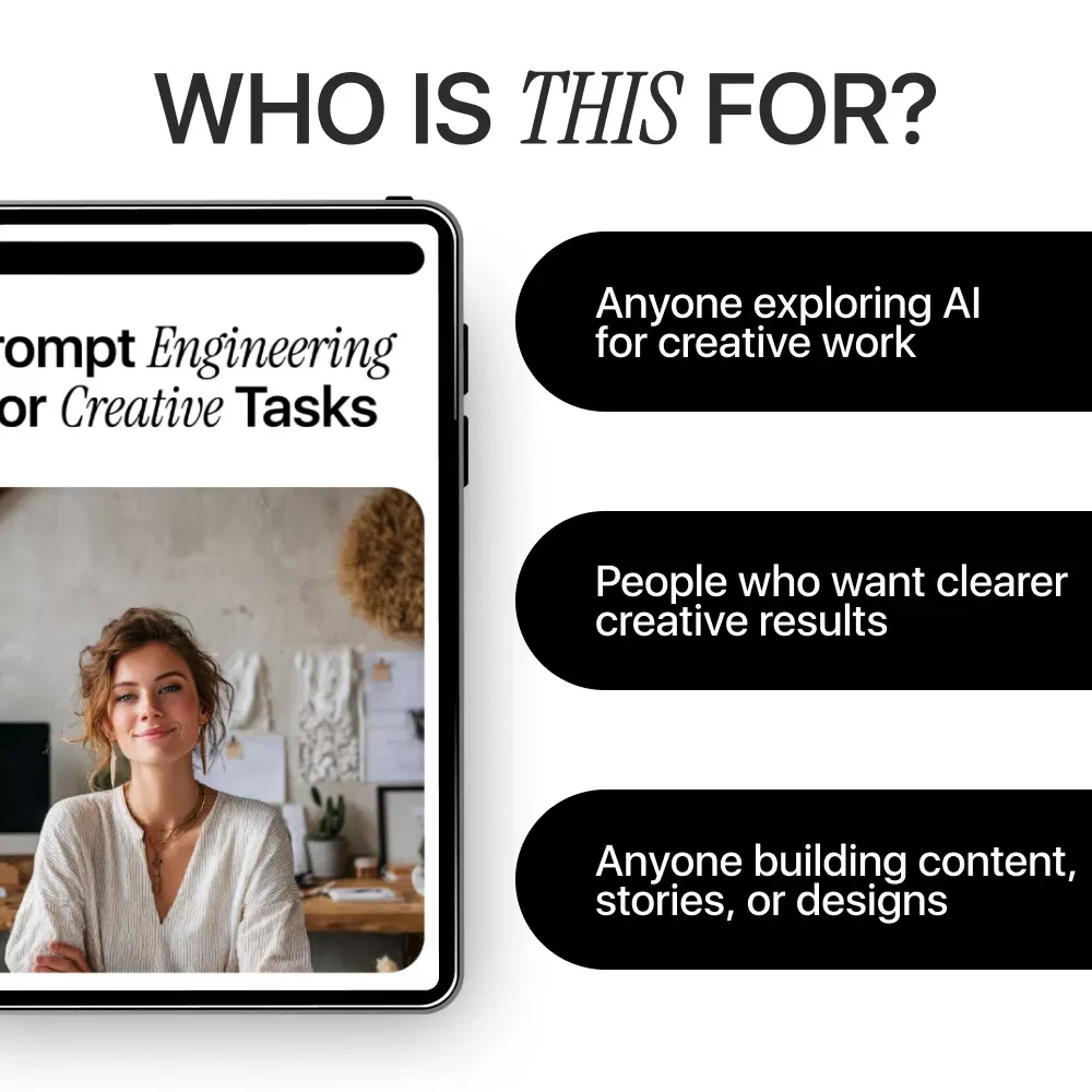 If you want clearer ideas, stronger creative outputs, and a repeatable system for working with AI, this guide is for you. Download Prompt Engineering for Creative Tasks today and start turning simple prompts into powerful creative tools.