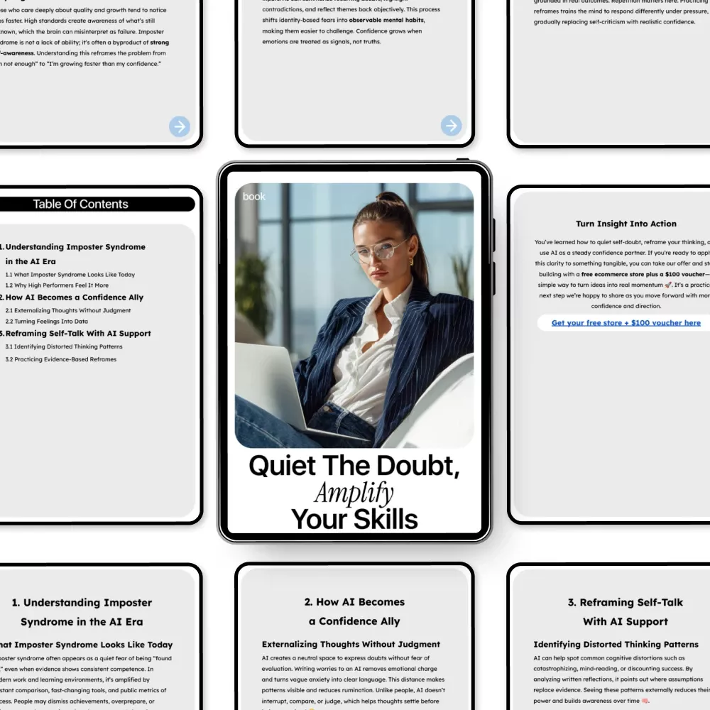 Stop letting self-doubt hold you back. Download Quiet the Doubt, Amplify Your Skills now and learn how to use AI to overcome imposter syndrome, amplify your abilities, and build the confidence you deserve.