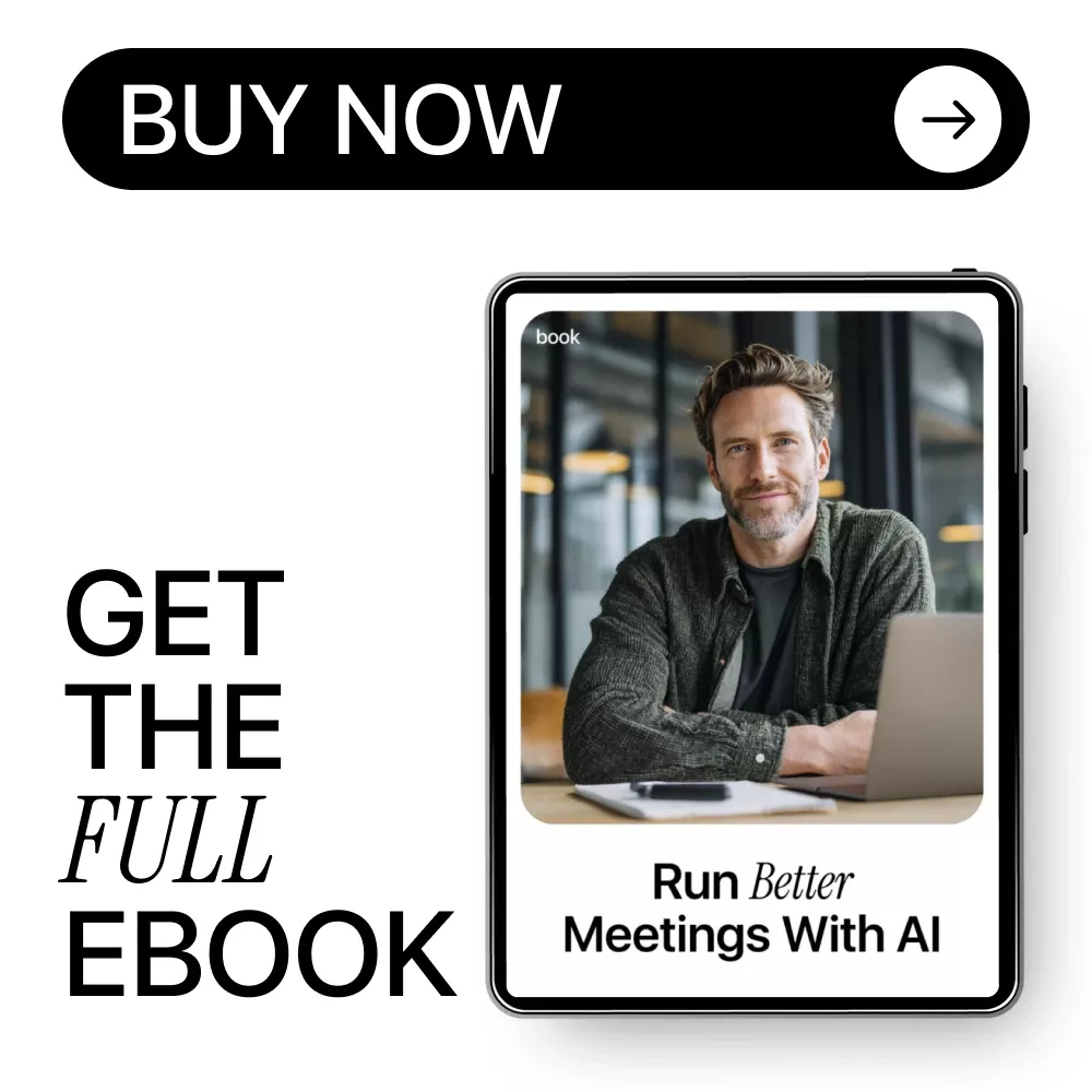 Meetings don’t fail because people don’t care. They fail because there’s no structure, no clarity, and no follow-through. Run Better Meetings With AI is a practical, easy-to-apply eBook that shows you exactly how to use AI as a meeting assistant before, during, and after every meeting. If you’ve ever left a meeting wondering what was decided, what comes next, or why it even happened, this guide was built for you.