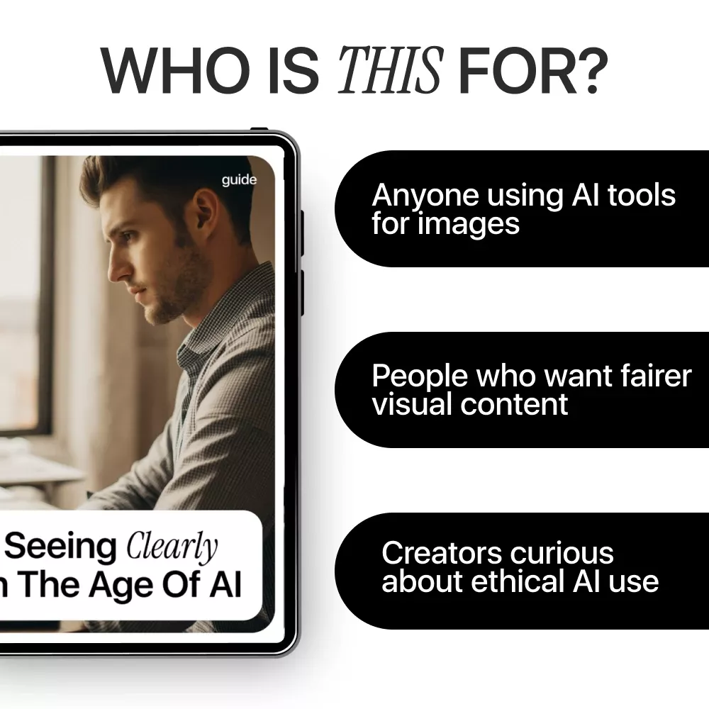 If you want to create visuals that feel more intentional, inclusive, and thoughtful, this guide is for you. Download today and take your next step toward becoming a more aware visual creator in the age of AI.