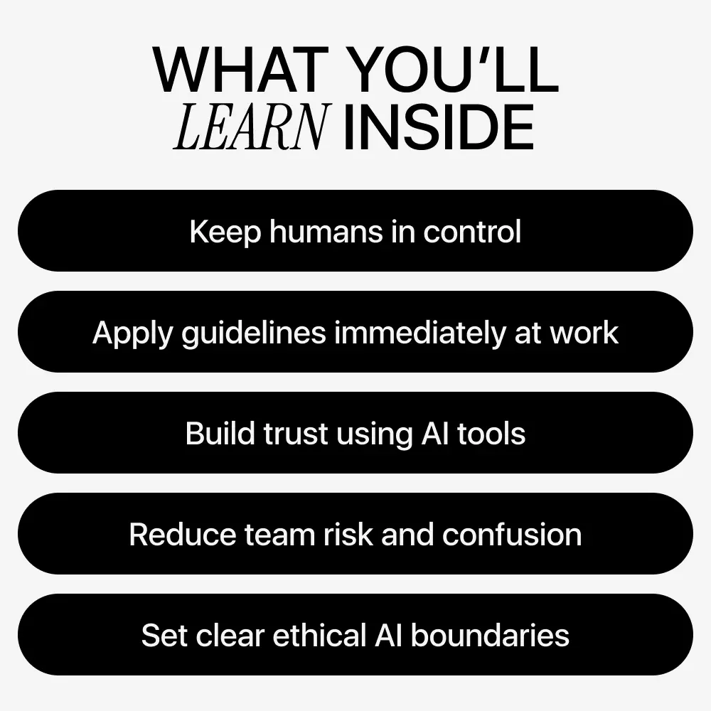 Unlike generic policy templates, Smart Rules for Using AI Together focuses on practical behavior, not legal jargon. It’s designed to be discussed, adapted, and used daily. The guide emphasizes collaboration, transparency, and flexibility, making it easy to turn ai ethics guidelines for teams into habits your team actually follows.