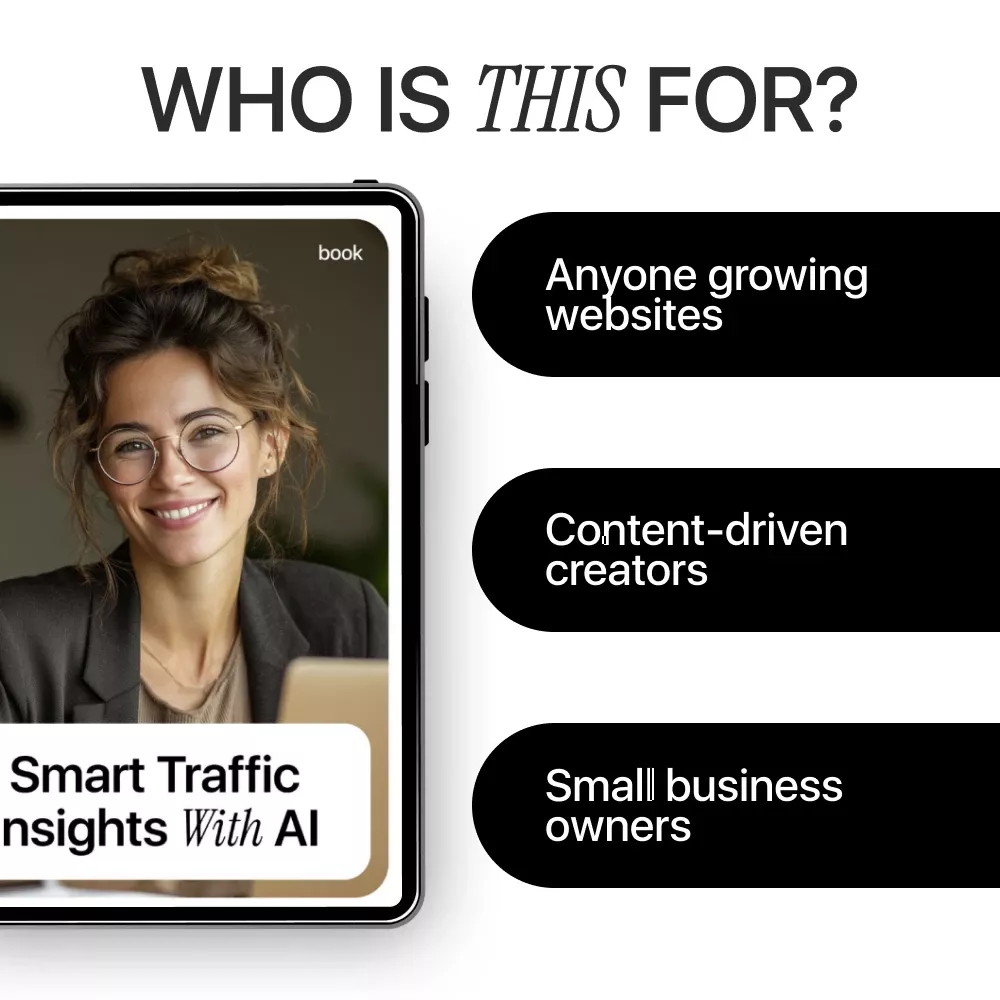 This ebook is perfect for bloggers, content creators, small business owners, marketers, and website managers who want clearer answers from their analytics. If you’ve ever wondered how to use ai to analyze website traffic without needing technical skills, this guide was made for you.