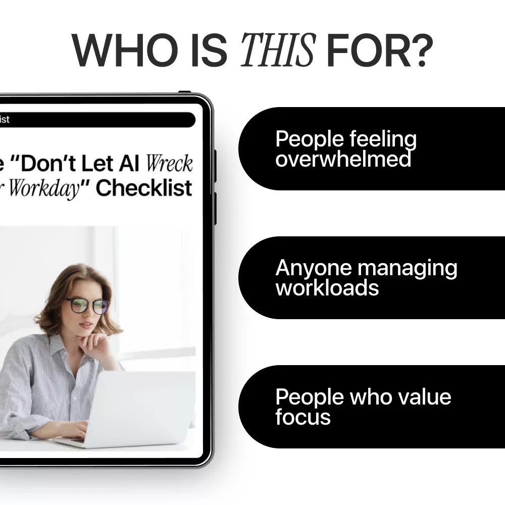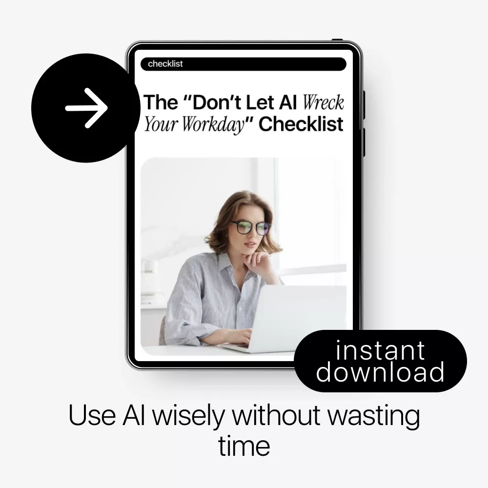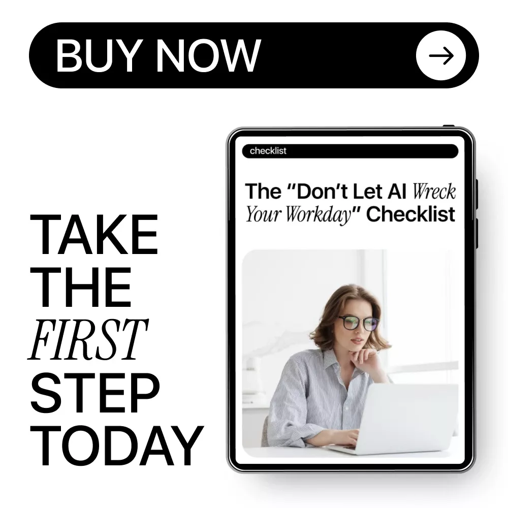 Download the “Don’t Let AI Wreck Your Workday” Checklist today and start using AI with intention, speed, and confidence—without letting it quietly slow you down.