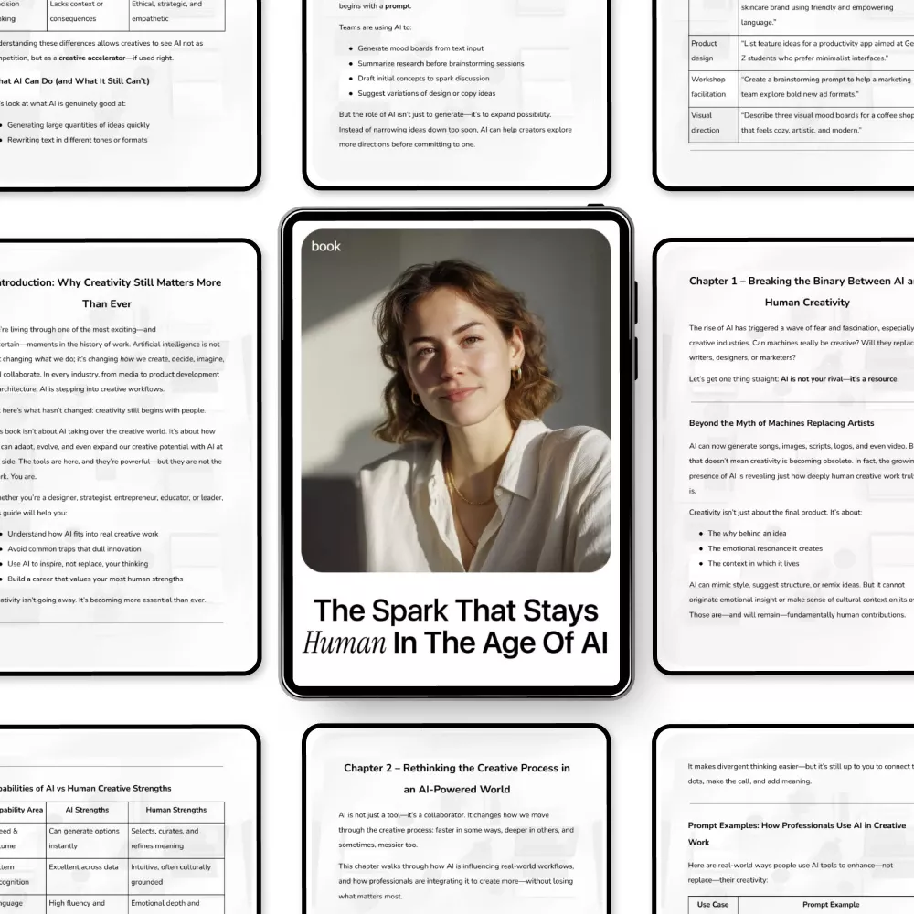 If you’re ready to protect your creative spark while embracing the future, The Spark That Stays Human in the Age of AI is your next essential read. Download instantly and start building work that stays meaningful, imaginative, and unmistakably human.
