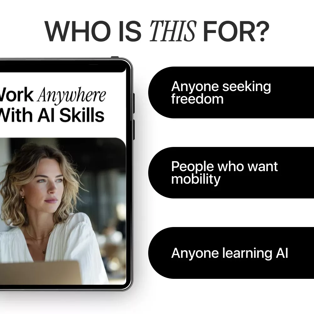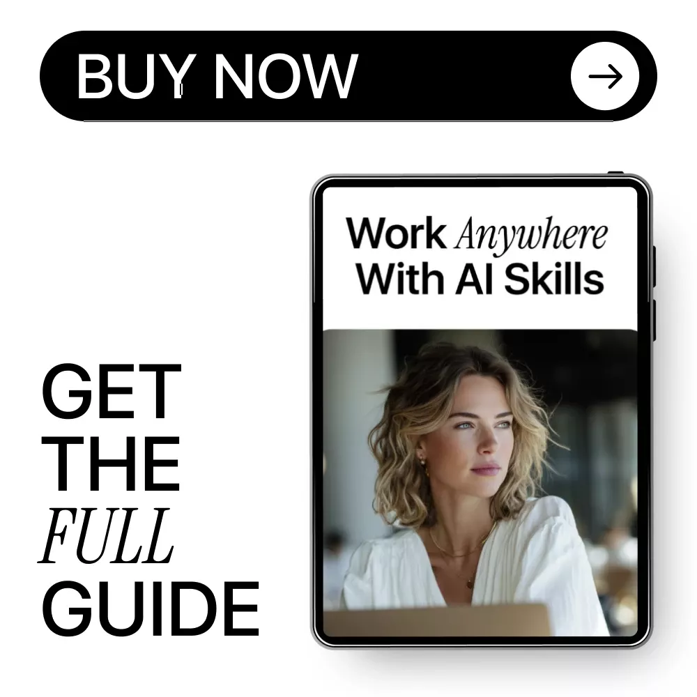 Don’t let borders limit your career. With Work Anywhere With AI Skills, you can start your journey today and see how AI can transform your work and lifestyle. Download now and unlock the strategies, prompts, and insights you need to work anywhere in the world!